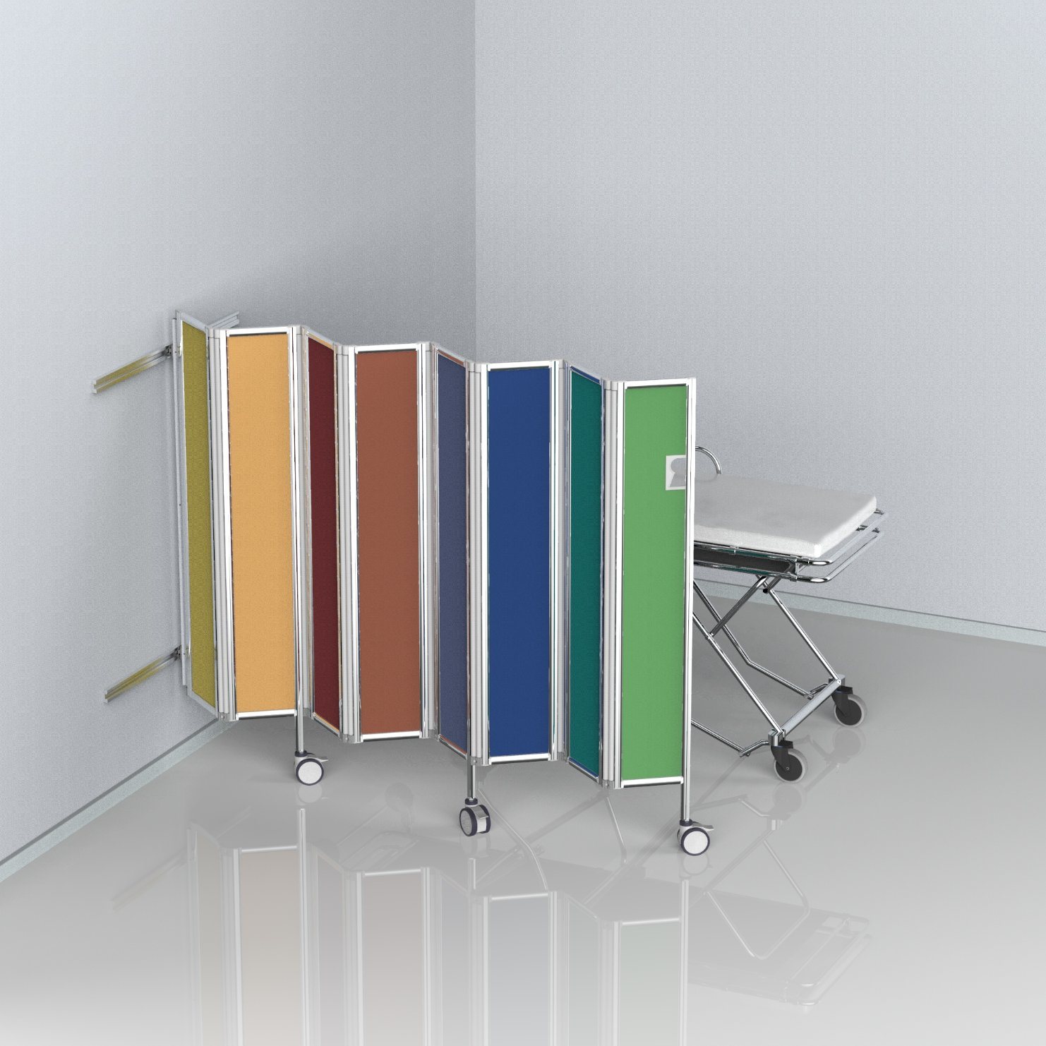 Partisi pada rumah sakit dapat kita temukan di setiap ruang karena fungsi utam dari partisi ini untuk membagi ruang antara pasien satu dengan lainnya sehingga privasi tetap terjaga. Material yang banyak digunakan pada partisi rumah sakit ini adalah material besi & aluminium yang lebih higienis & sesuai dengan standart yang ada.
